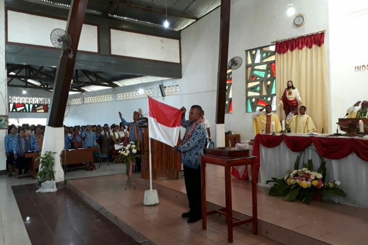 Di Daerah Ini Warga Upacara Bendera di Dalam Gereja